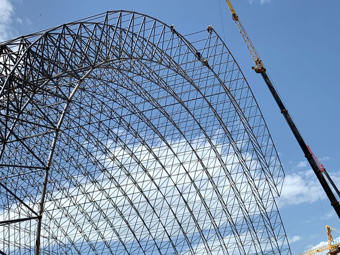 (2)网架加工前应对现场尺寸进行复测,确认无误后方可进行加工、安装;网架制作、运输、安装应遵守《空间网格结构技术规程》JGJ7-2010、《钢网架来宾螺栓球节点》JG/T 10-2009、《钢网架来宾螺栓球节点用高强度螺栓》 GB/T 16939-2016、《来宾钢结构来宾工程来宾施工规范》 GB50755-2012、《来宾钢结构来宾工程施工质量验收标准》 GB50205-2020。